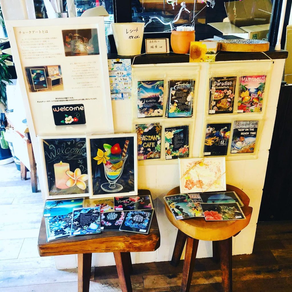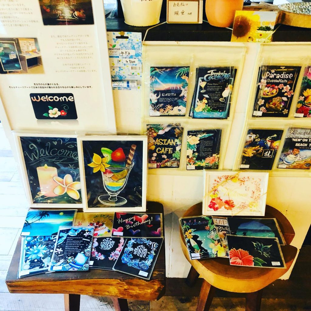 サンチャイルドのチョークアート作品を飾ったり、グッズ販売をしていただくこととなりました❤️